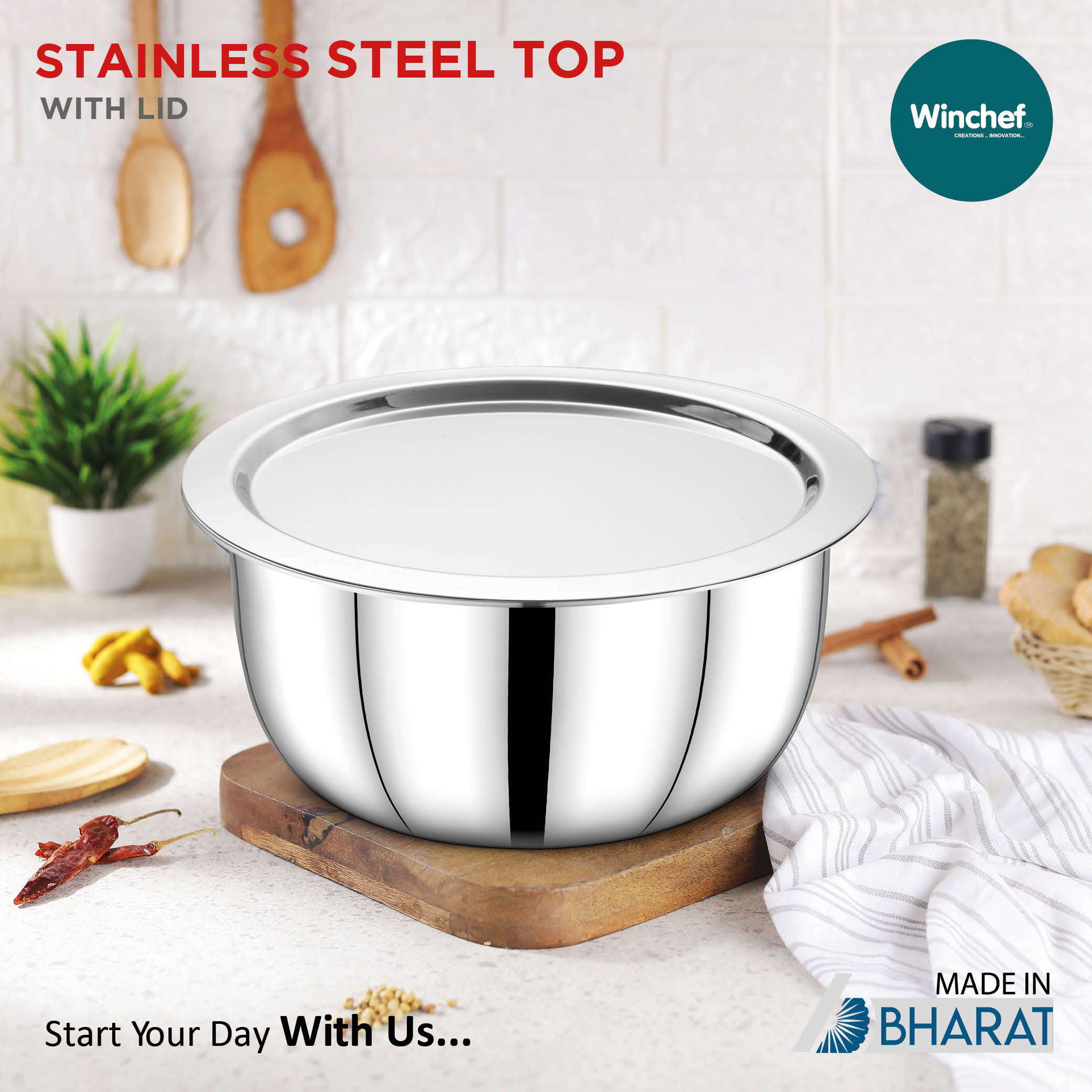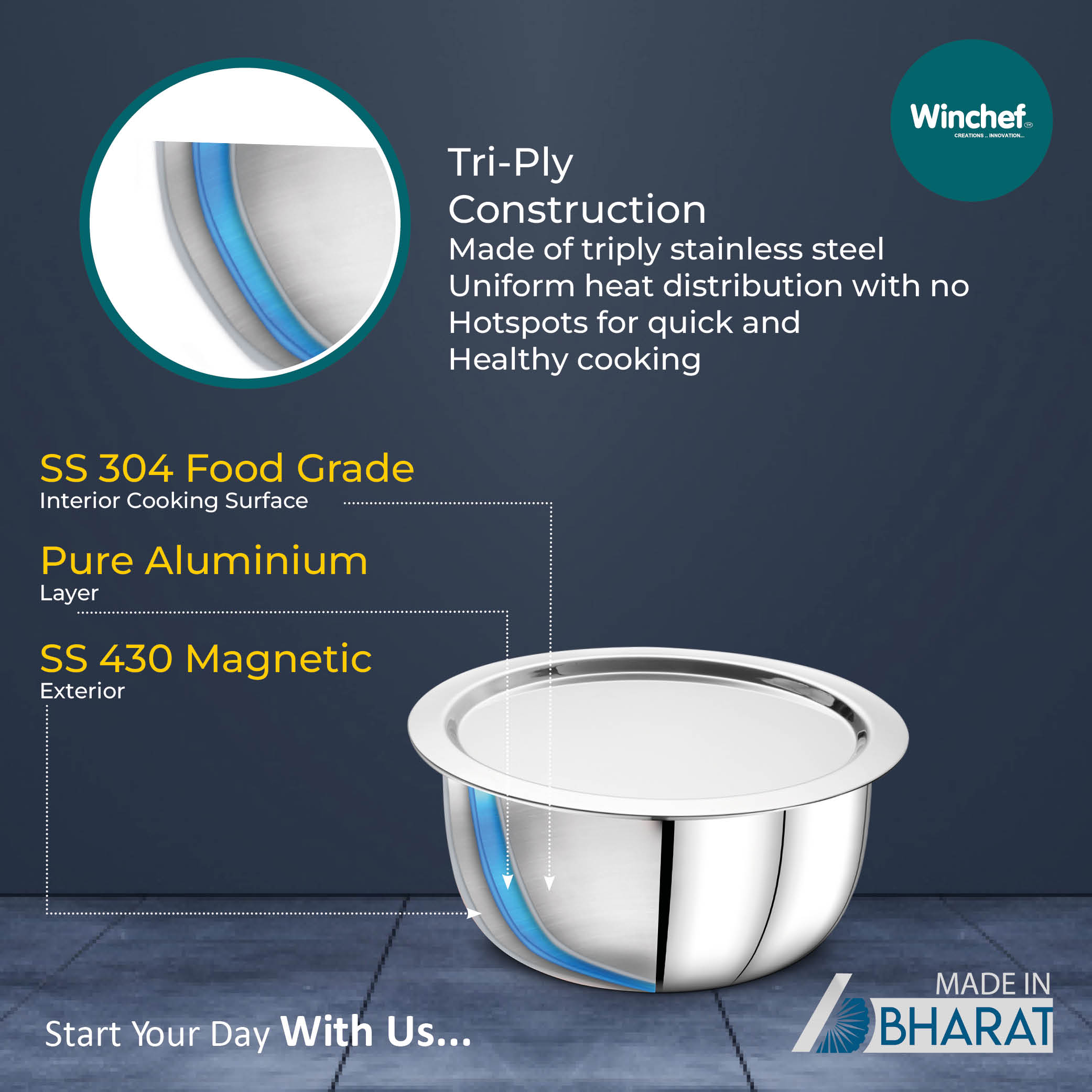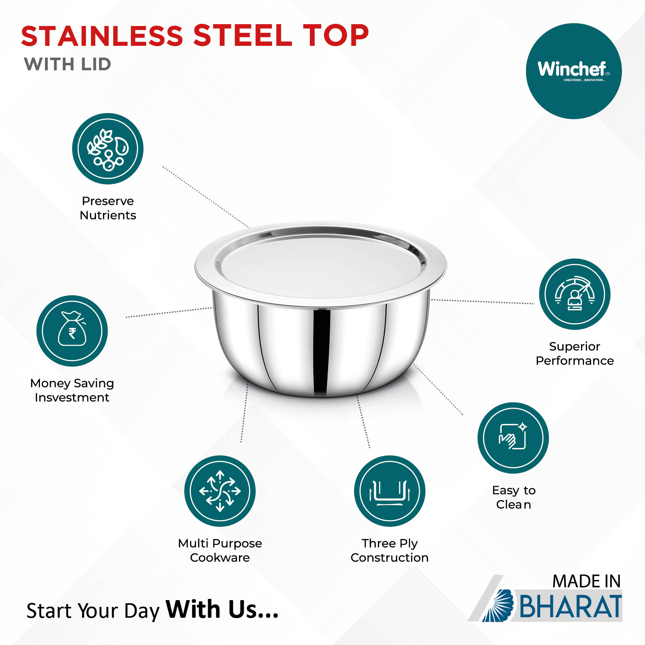 Winchef Triply Stainless Steel Steelanium TOP with lid, Gas and Induction Compatible