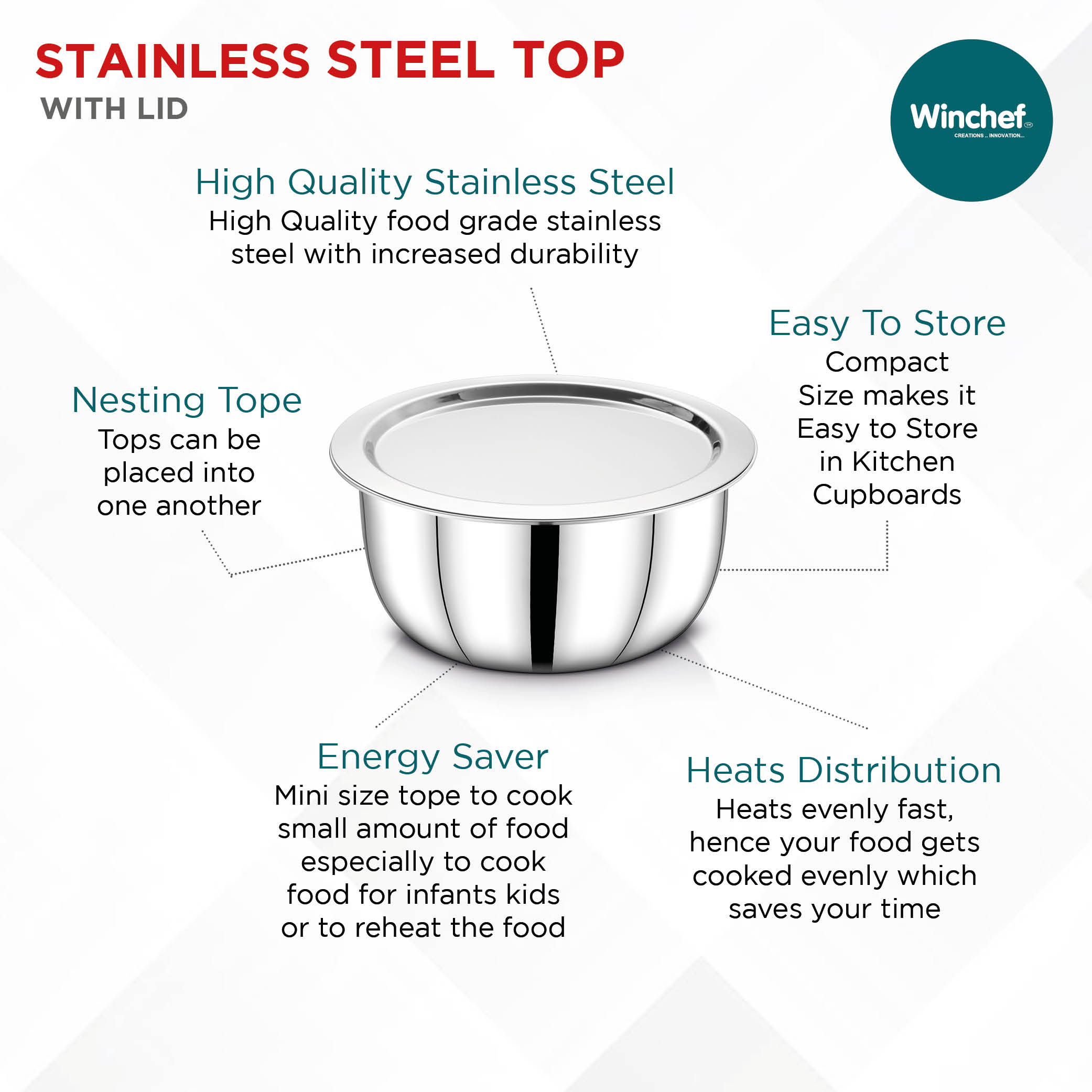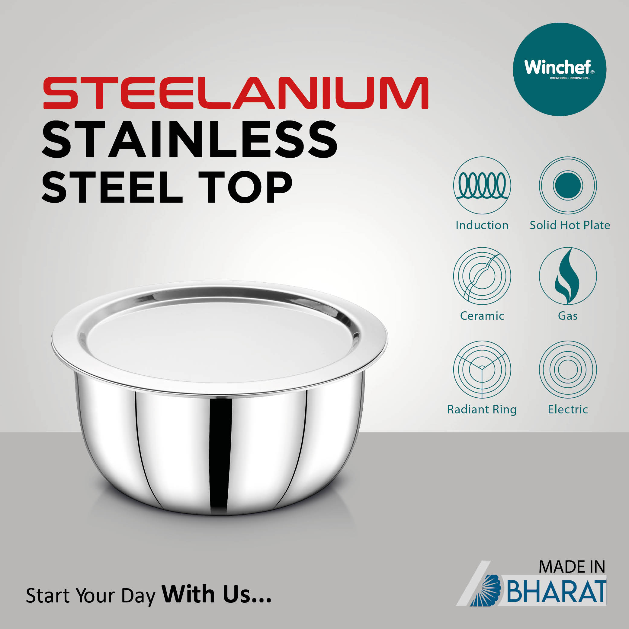 Home Cookware Triply Steelanium Top Winchef Triply Stainless Steel Steelanium TOP with lid, Gas and Induction Compatible