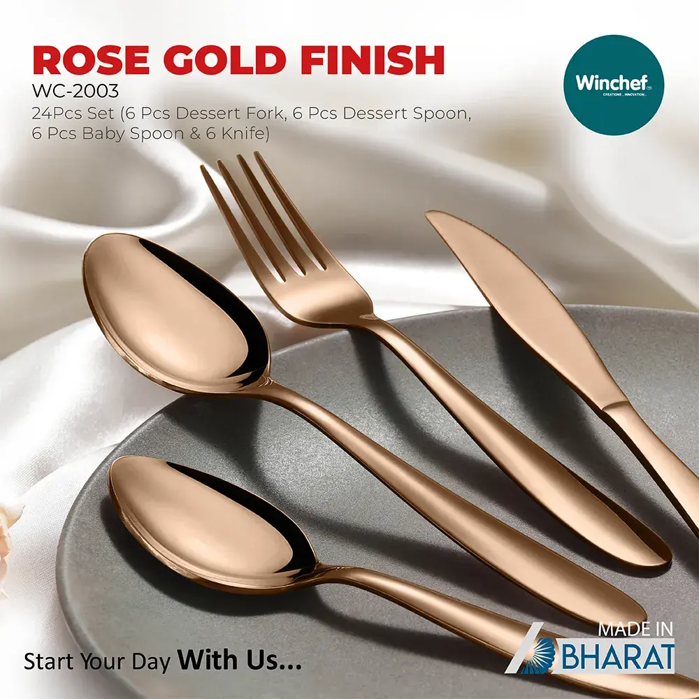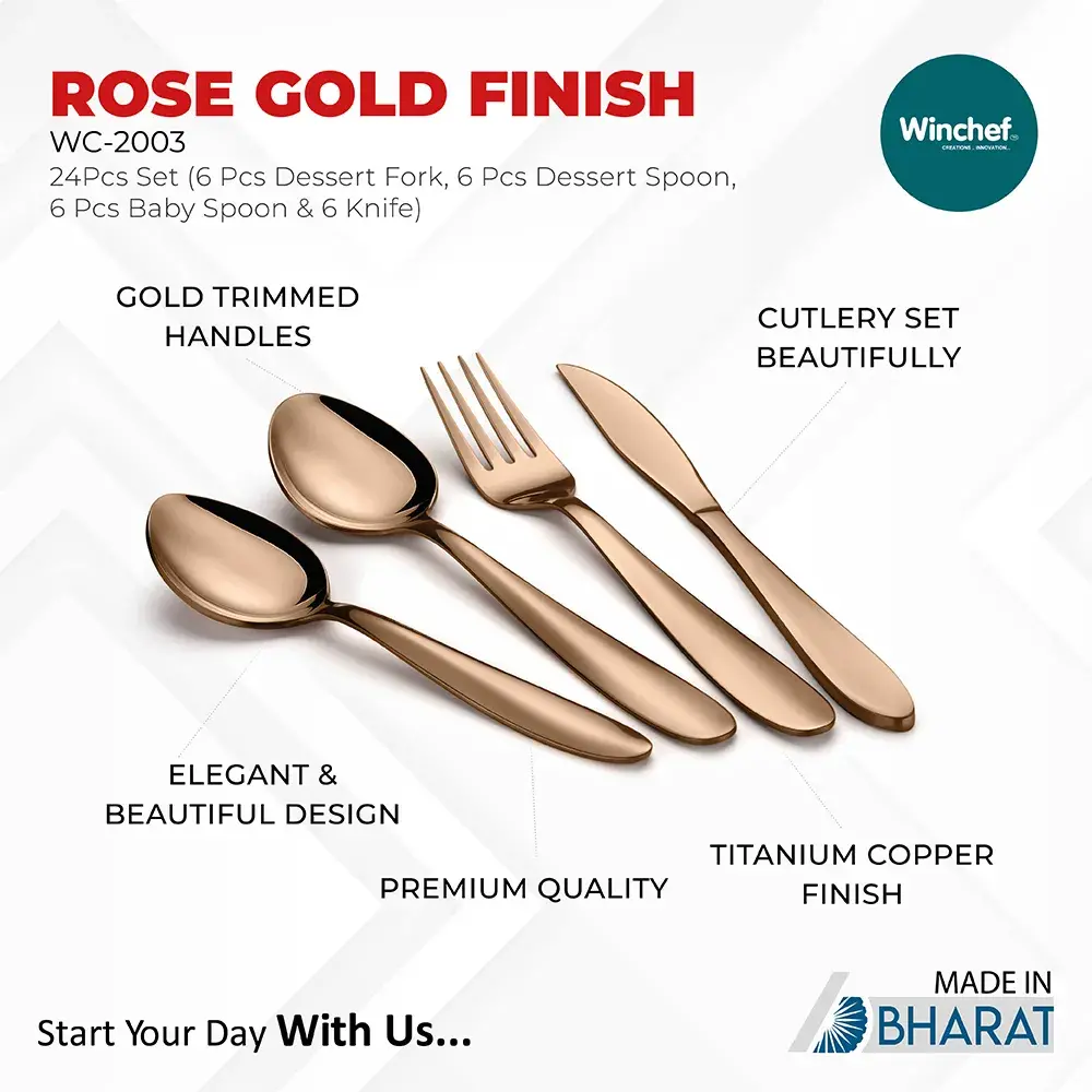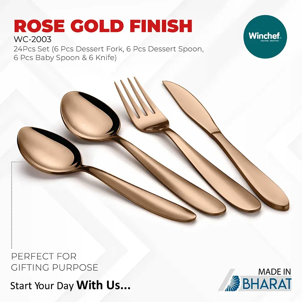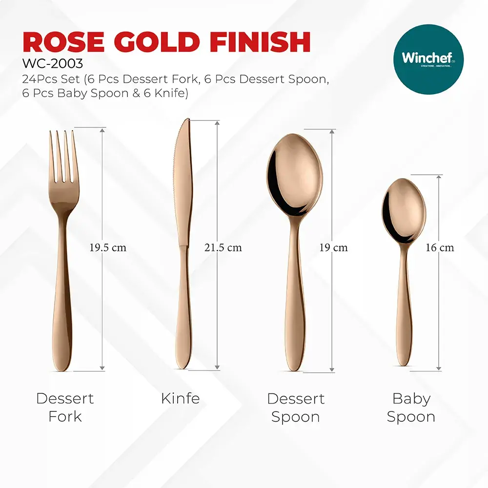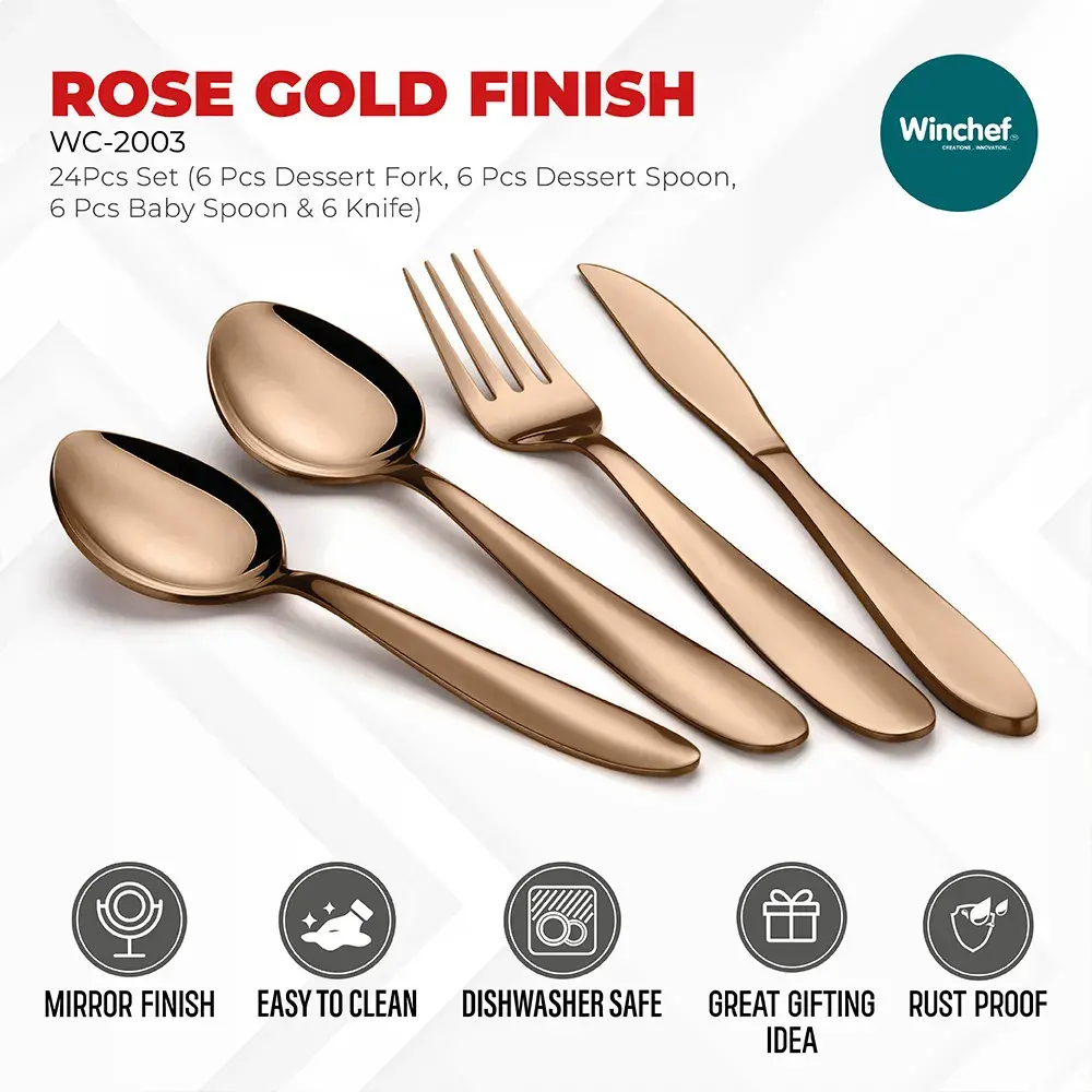 Home Tableware Premium Cutlery Series Winchef Stainless Steel 6 Pcs Desert Spoon Rose Gold Set, Non-Magnetic Premium Spoons, 1.6mm to 2.5mm Thickness