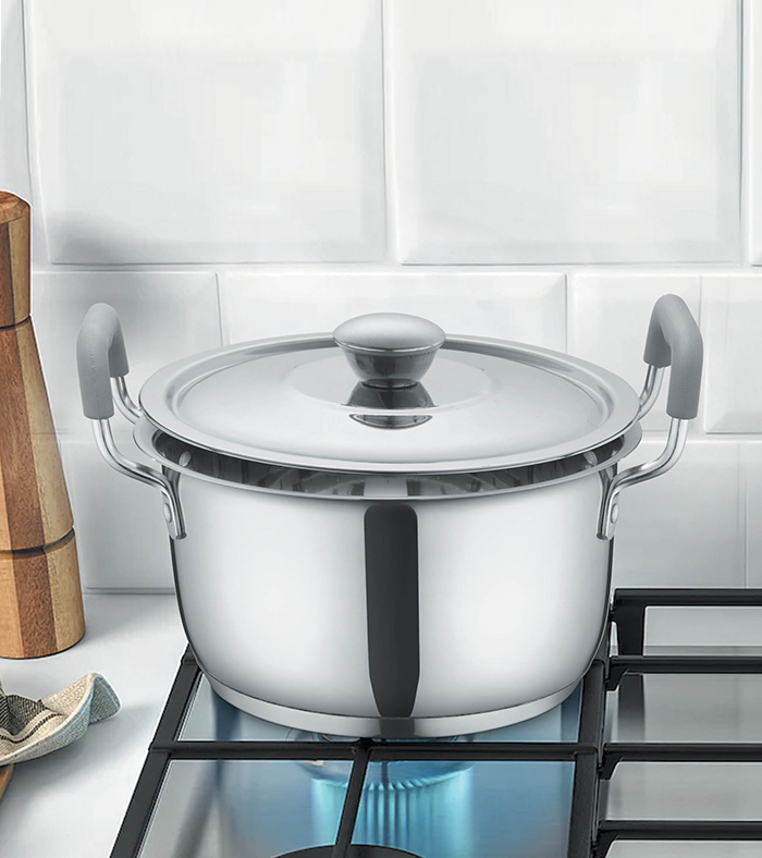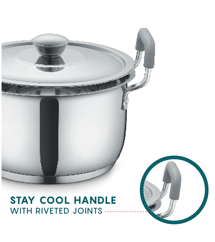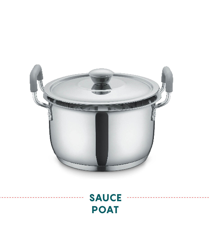 • Wider Base: Thick Triply bottom is sandwiched with impact bonded technology to remain peel proof & durable for life. Wider flat base of the SAUCE POT ensures even heating distribution & prevents food burning.