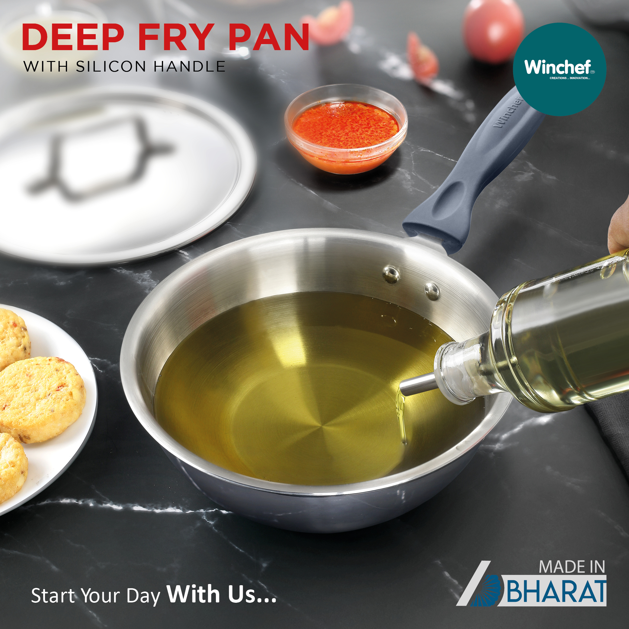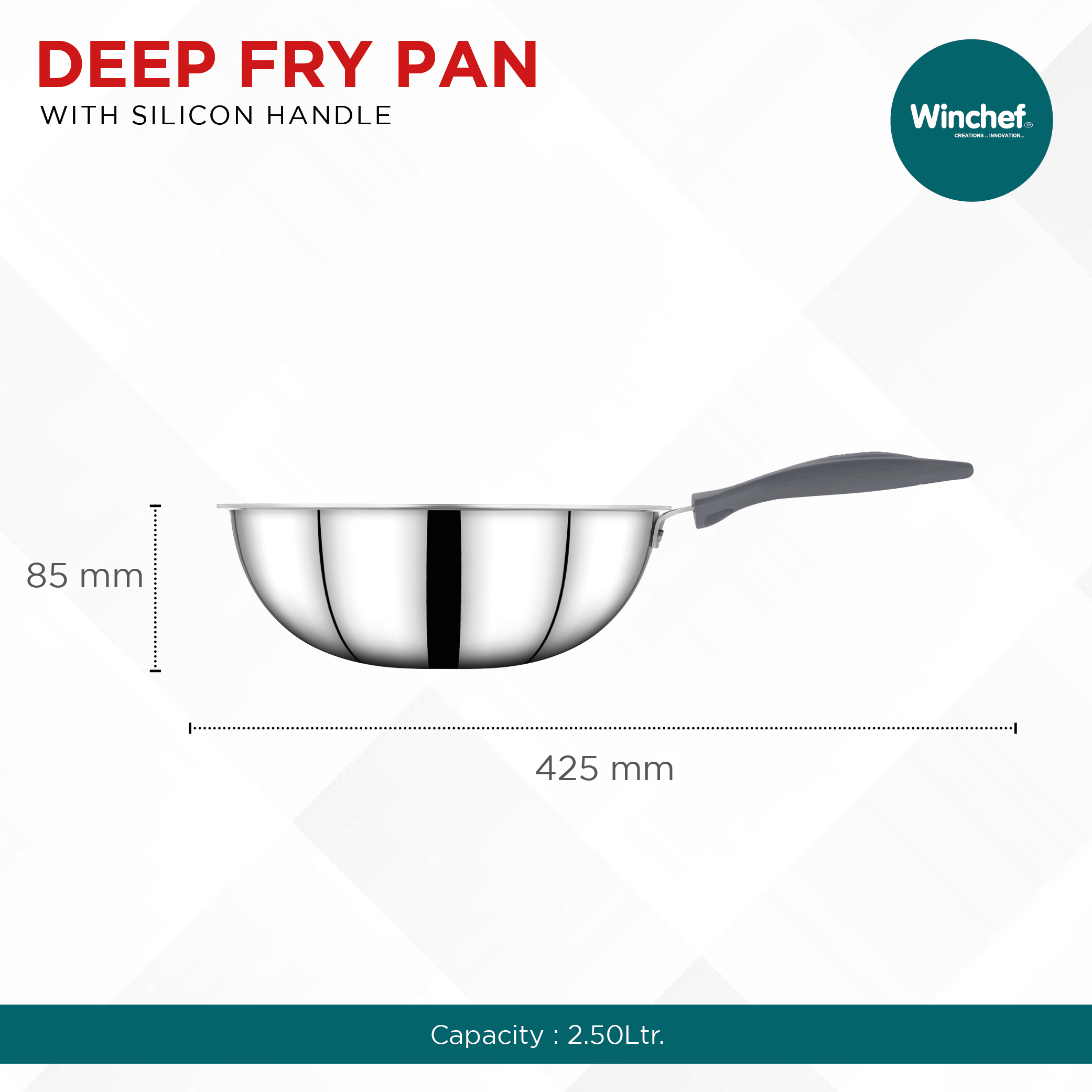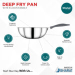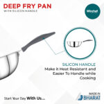Winchef Steelanium Triply Induction Friendly Deep Fry Pan is manufactured with utmost care and precision. It ensures an impeccable feel and finish, with fantastic utility and efficiency. Winchef Steelanium Triply Cookware Series is a 3 Layer Construction. Three different layers of metal bonded together- food-grade 18/8 stainless steel and SS-430 magnetic stainless steel with an encapsulated layer of aluminium in the middle right throughout the cookware for an even distribution of heat. It comes with silicone handles which ensure handles don’t break easily as well as prevent them from getting too hot and keep your hands safe.